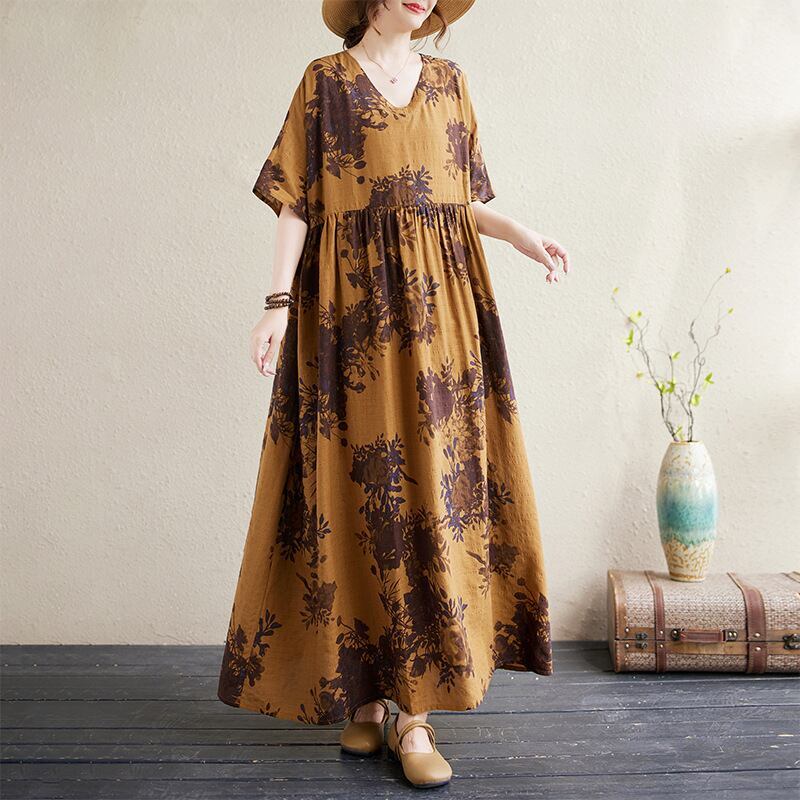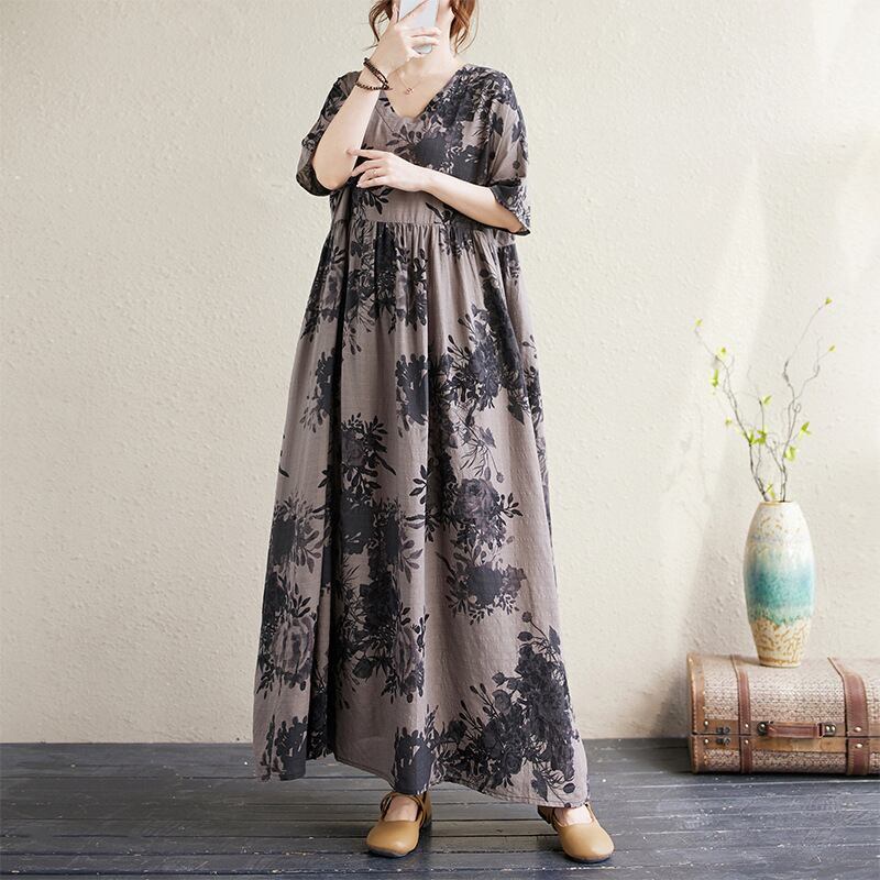 上品さたっぷり ファッション ギャザー 配色 ハイウエスト ビックシルエット Vネック Aライン プリントワンピース 大人カジュアル fashion ootd 夏コーデ ファッション coordinateコーディネート 夏服 カジュアルコーデ 今日のコーデ 大人コーデ レディースGF4646