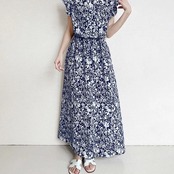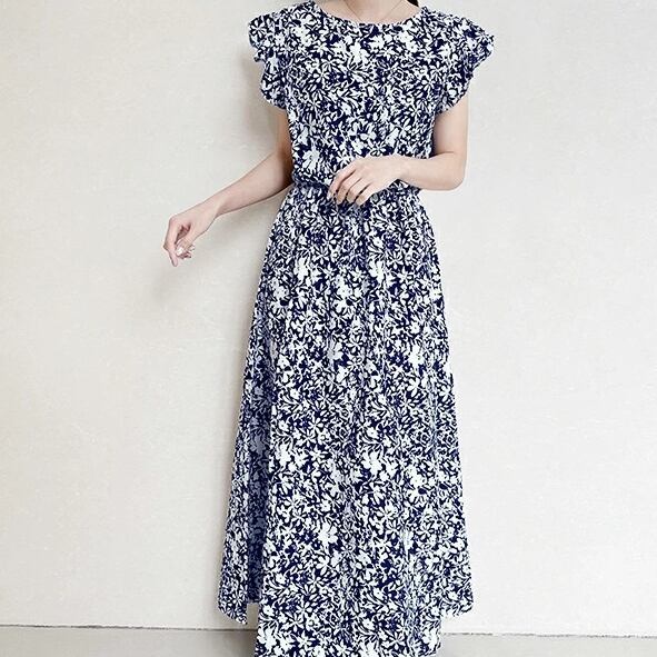 女っぽさが漂う ファッション フリル袖 キレカジ 半袖 切り替え Aライン マキシ 花柄ワンピース 大人カジュアル fashion ootd 夏コーデ ファッション coordinateコーディネート 夏服 カジュアルコーデ 今日のコーデ 大人コーデ レディースGF4658