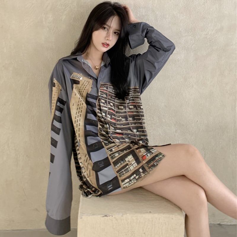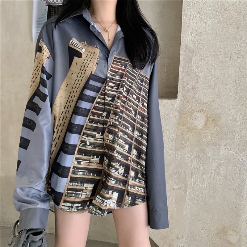 レトロ プリント 長袖 オシャレ度満点 シャツ ブラウス トップスGF1137