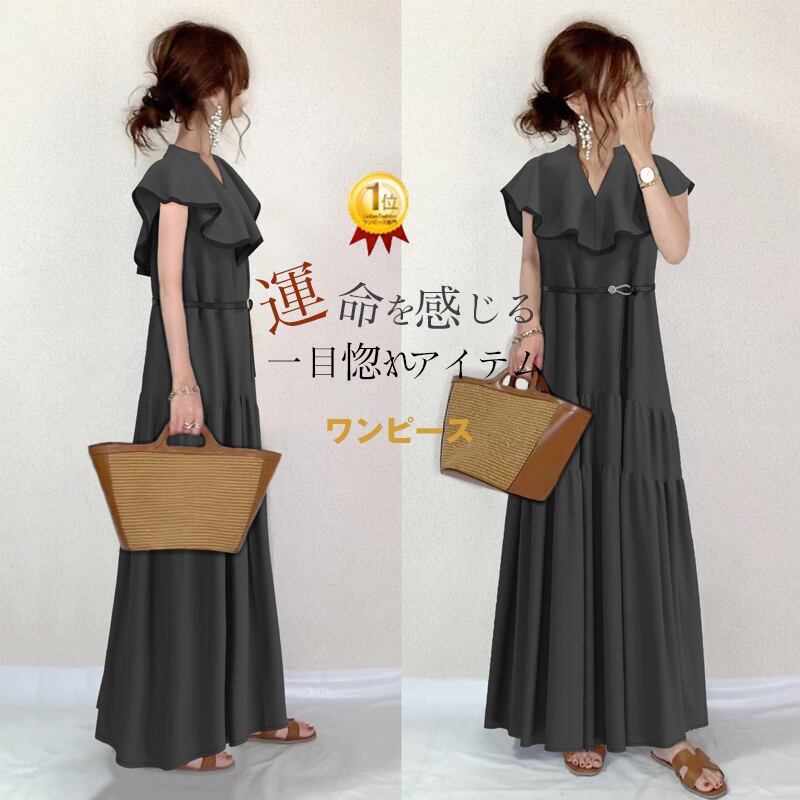 おしゃれ度アップ 無地 ギャザー 半袖 Vネック フリル袖 カジュアルワンピース 大人カジュアル fashion ootd 夏コーデ ファッション coordinateコーディネート 夏服 カジュアルコーデ 今日のコーデ 大人コーデ レディースGF4674