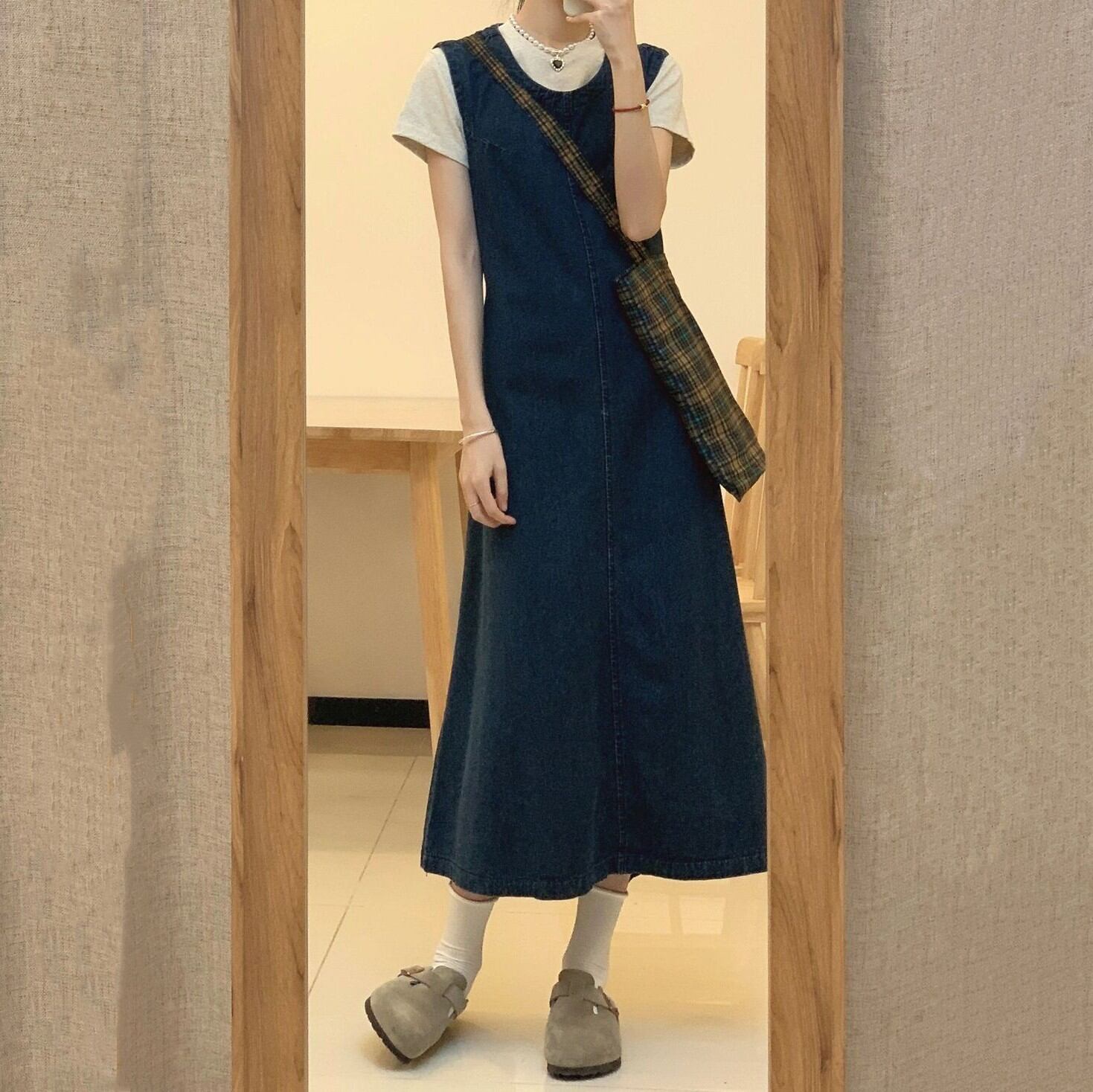 個性的なデザイン カジュアル ファッション 無地 Uネック ノースリーブ 透かし編み ジャンパースカート 大人カジュアル fashion ootd 夏コーデ ファッション coordinateコーディネート 夏服 カジュアルコーデ 今日のコーデ 大人コーデ レディースGF5363