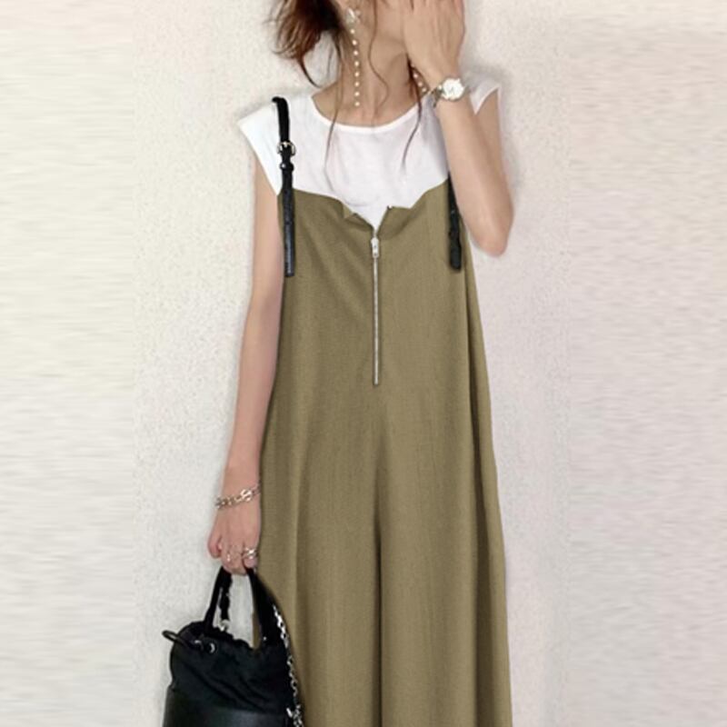 絶対欲しい シンプル ファスナー ギャザー 無地 ノースリーブ オールインワン 大人カジュアル fashion ootd 夏コーデ ファッション coordinateコーディネート 夏服 カジュアルコーデ 今日のコーデ 大人コーデ レディースGF5394