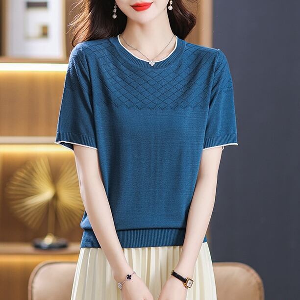 大人可愛い シンプル ラウンドネック 半袖 通気性良い 着痩せ効果 Tシャツ 大人カジュアル fashion ootd 夏コーデ ファッション coordinateコーディネート 夏服 カジュアルコーデ 今日のコーデ 大人コーデ レディースGF5423