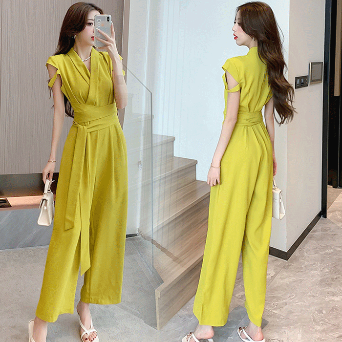 高見えデザイン ファッション 無地 半袖 Vネック オールインワン 大人カジュアル fashion ootd 夏コーデ ファッション coordinateコーディネート 夏服 カジュアルコーデ 今日のコーデ 大人コーデ レディースGF5448