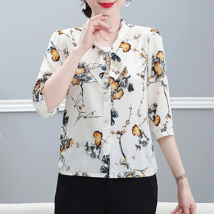 個性的なデザイン エレガント フェミニン プリント 七分袖 ラウンドネック ブラウス 大人カジュアル fashion ootd 夏コーデ ファッション coordinateコーディネート 夏服 カジュアルコーデ 今日のコーデ 大人コーデ レディースGF5449