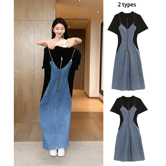 高級感 シンプル ファスナー 切り替え 配色 スタンドネック 半袖 カジュアルワンピース 大人カジュアル fashion ootd 夏コーデ ファッション coordinateコーディネート 夏服 カジュアルコーデ 今日のコーデ 大人コーデ レディースGF5450