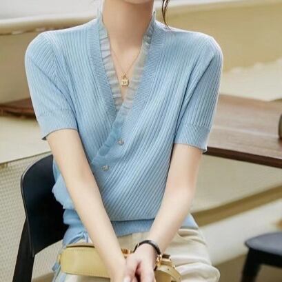 買わなきゃ損 シンプル 無地 Vネック ボタン 半袖 ニット シャツ 大人カジュアル fashion ootd 夏コーデ ファッション coordinateコーディネート 夏服 カジュアルコーデ 今日のコーデ 大人コーデ レディースGF5464