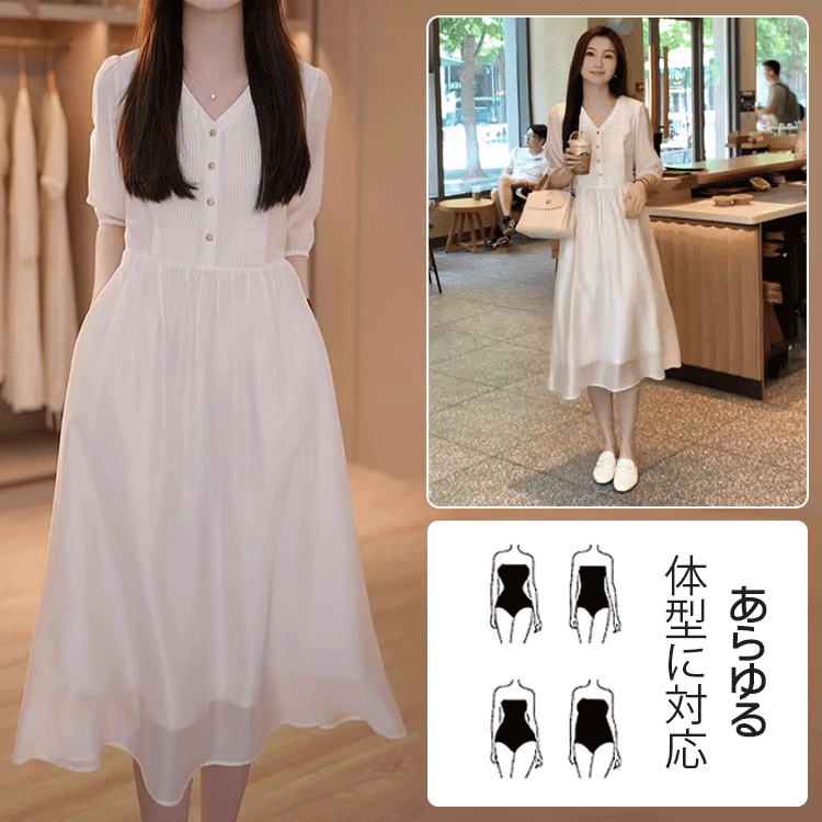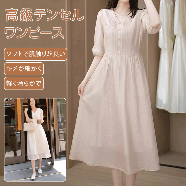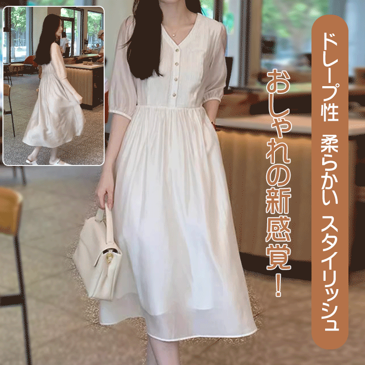 買わなきゃ損 シンプル 無地 ランタンスリーブ 五分袖 Vネック カジュアルワンピース 大人カジュアル fashion ootd 夏コーデ ファッション coordinateコーディネート 夏服 カジュアルコーデ 今日のコーデ 大人コーデ レディースGF5451