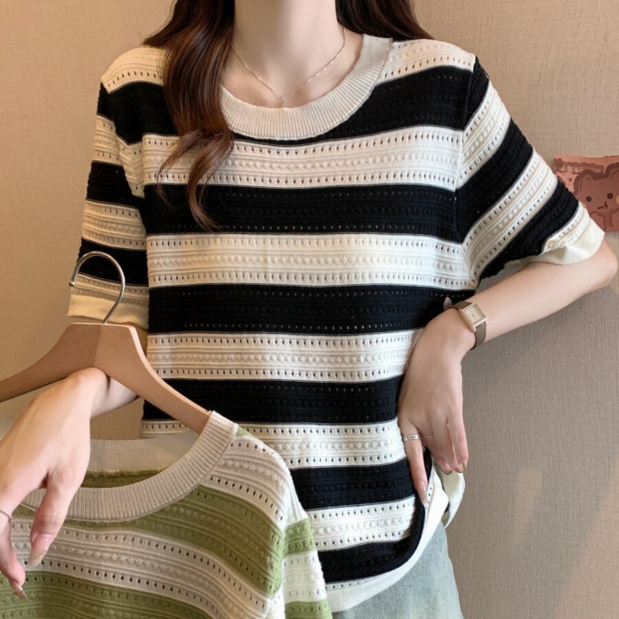 高見えデザイン シンプル ファッション 半袖 ボーダー ラウンドネック Tシャツ 大人カジュアル fashion ootd 夏コーデ ファッション coordinateコーディネート 夏服 カジュアルコーデ 今日のコーデ 大人コーデ レディースGF4752