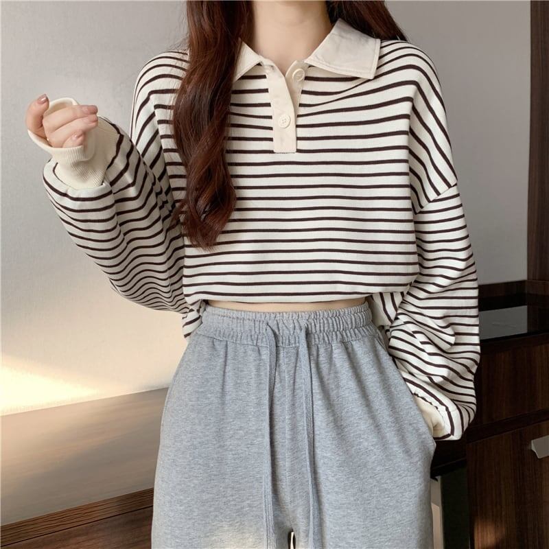 お洒落 POLOネック ボーダー柄 清純甘くて女子力UP スウェット パーカーGF1231