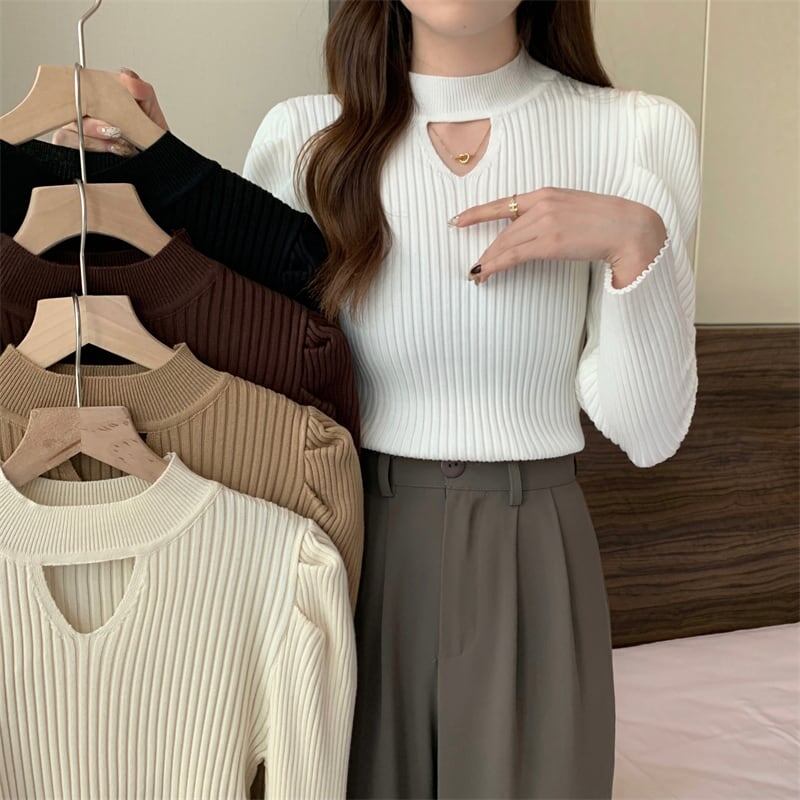 オシャレ度満点 切り替え 無地 カジュアル 長袖 セーター トップスGF1244