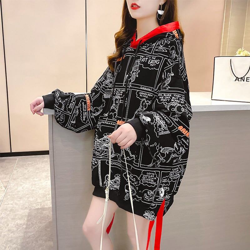 高級感溢れた カートゥーンプリント 一目惚れ 切り替え スウェット パーカーGF1245
