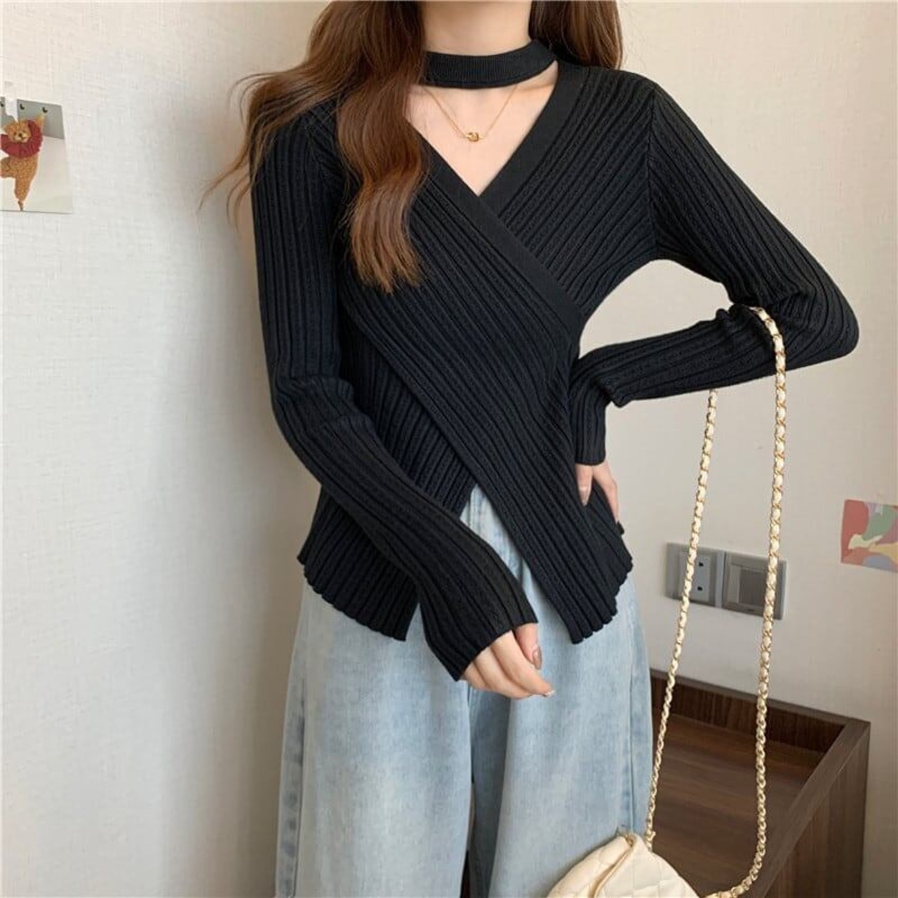 個性的なデザイン 無地 切り替え 一目惚れ 長袖 セーター トップスGF1248