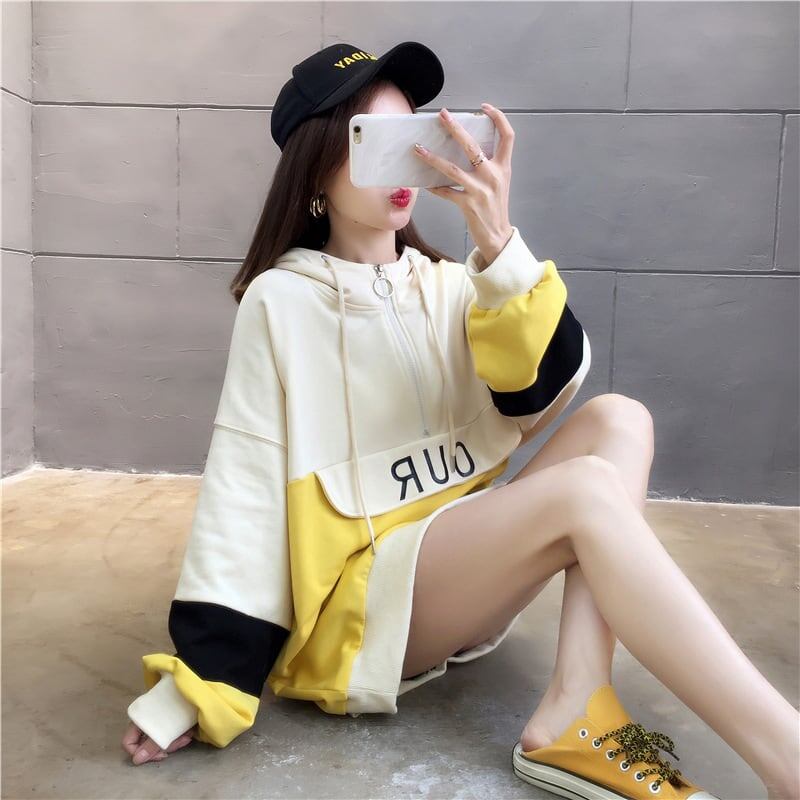 オシャレ感たっぷり 切り替え ジッパー 美人度アップ スウェット パーカーGF1251