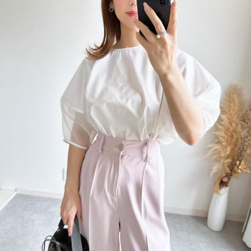 絶対流行 フェミニン エレガント 無地 切り替え ランタンスリーブ 半袖 Tシャツ 大人カジュアル fashion ootd 夏コーデ ファッション coordinateコーディネート 夏服 カジュアルコーデ 今日のコーデ 大人コーデ レディースGF4809