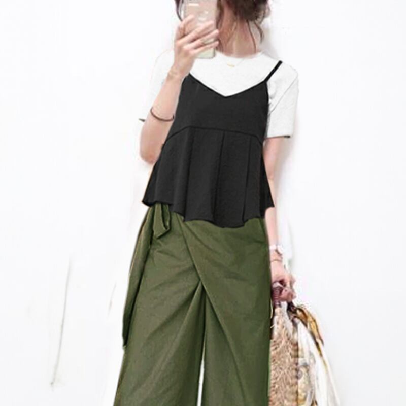 人気集中アイテム シンプル ノースリーブ 無地 カジュアルパンツ ボウタイ ギャザー 2点セット 大人カジュアル fashion ootd 夏コーデ ファッション coordinateコーディネート 夏服 カジュアルコーデ 今日のコーデ 大人コーデ レディースGF4817