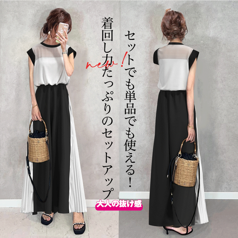SNSで大騒ぎ 半袖 ラウンドネック Tシャツ ガウチョパンツ 切り替え 配色 2点セット 大人カジュアル fashion ootd 夏コーデ ファッション coordinateコーディネート 夏服 カジュアルコーデ 今日のコーデ 大人コーデ レディースGF4816