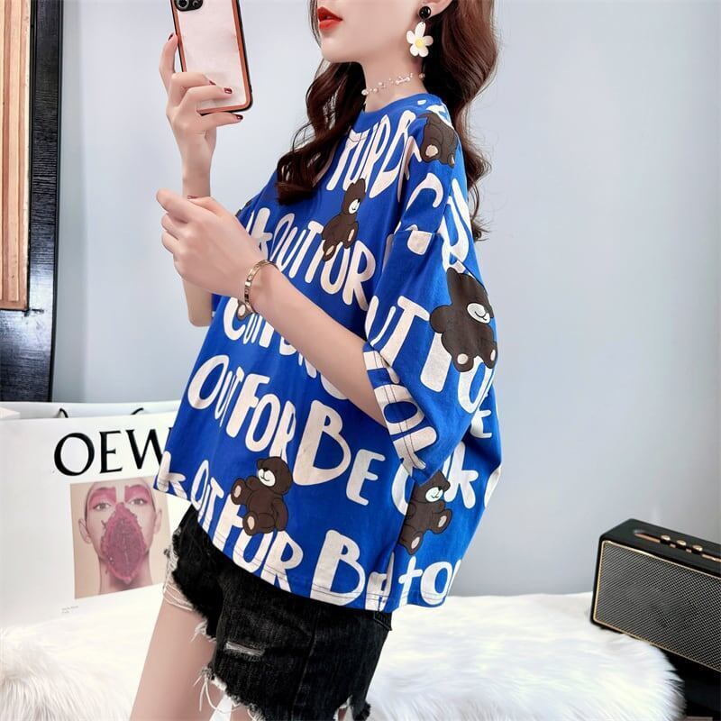 着心地抜群 ラウンドネック プリント 好感度満載 Tシャツ カットソーGF1283