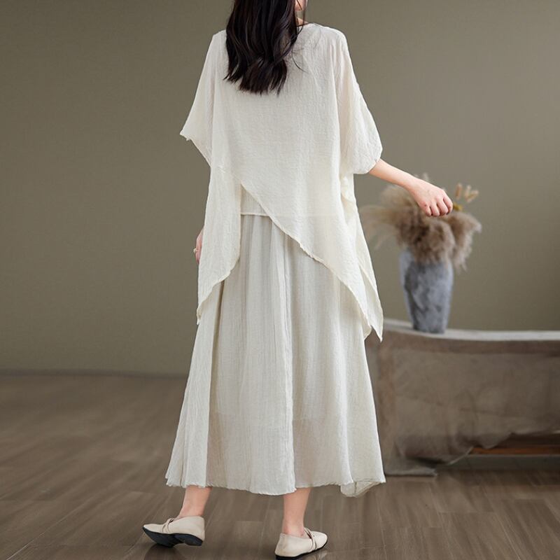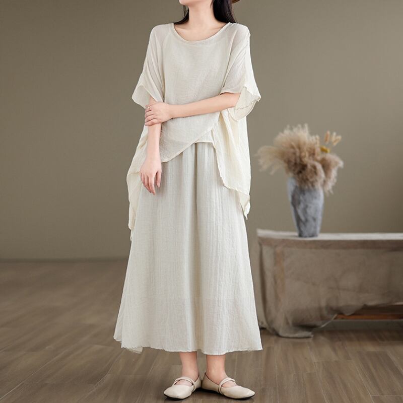 柔らかくて優しい印象 森ガール 無地 スリット Tシャツ+スカート 三点セット 大人カジュアル fashion ootd 夏コーデ ファッション coordinateコーディネート 夏服 カジュアルコーデ 今日のコーデ 大人コーデ レディースGF4848