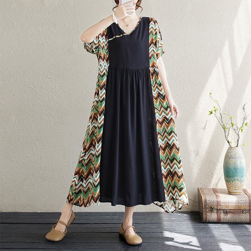 欠かせない 切り替え Vネック 半袖 森ガール ナチュラル プリントワンピース 大人カジュアル fashion ootd 夏コーデ ファッション coordinateコーディネート 夏服 カジュアルコーデ 今日のコーデ 大人コーデ レディースGF4859