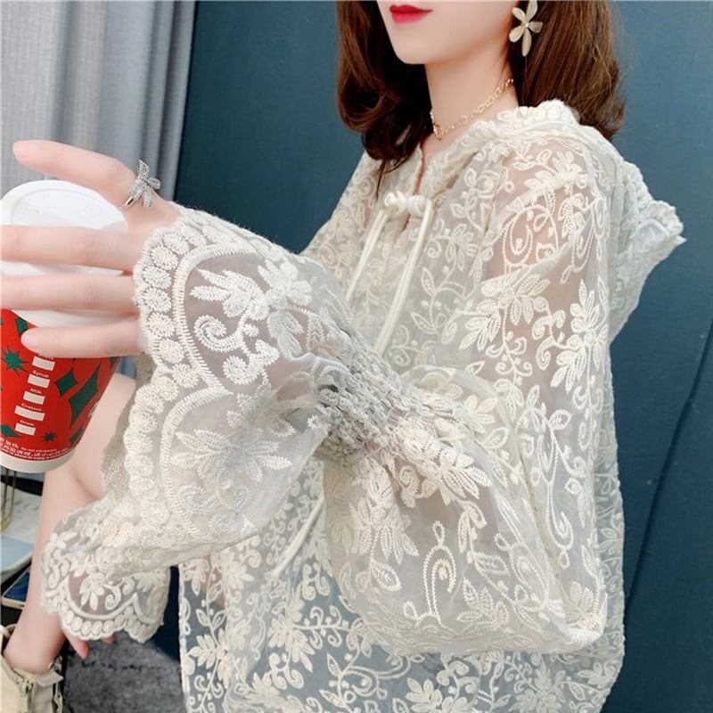 好感度満載 切り替え 透け感 日焼け対策 シャツ ブラウス トップスGF1295