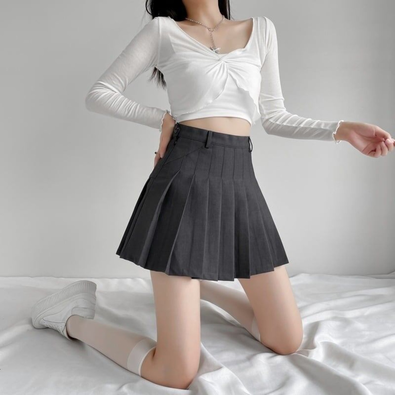 好感度満載 無地 ハイウエスト 美感いっぱい プリーツ ボトムスGF1311