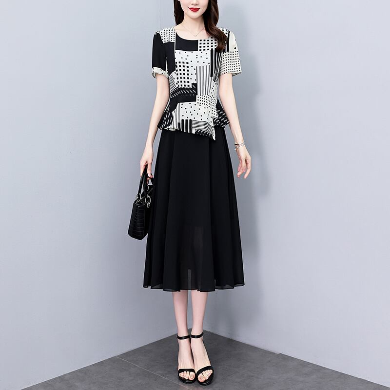 デザイン性抜群 フェミニン Aライン 配色 プリント Uネック 切り替え エレガントワンピース 大人カジュアル fashion ootd 夏コーデ ファッション coordinateコーディネート 夏服 カジュアルコーデ 今日のコーデ 大人コーデ レディースGF4882
