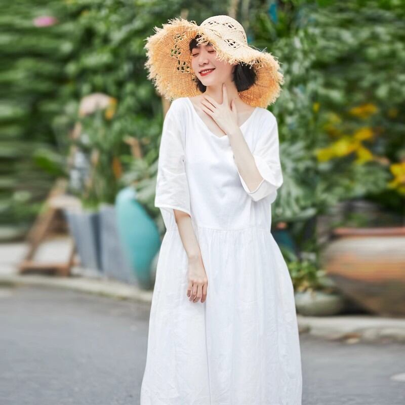 絶対流行 五分袖 ファッション 無地 体型をカバー 大きめのサイズ感 シンプル ハイウエスト Aライン カジュアルワンピース 大人カジュアル fashion ootd 夏コーデ ファッション coordinateコーディネート 夏服 カジュアルコーデ 今日のコーデ 大人コーデ レディースGF4890