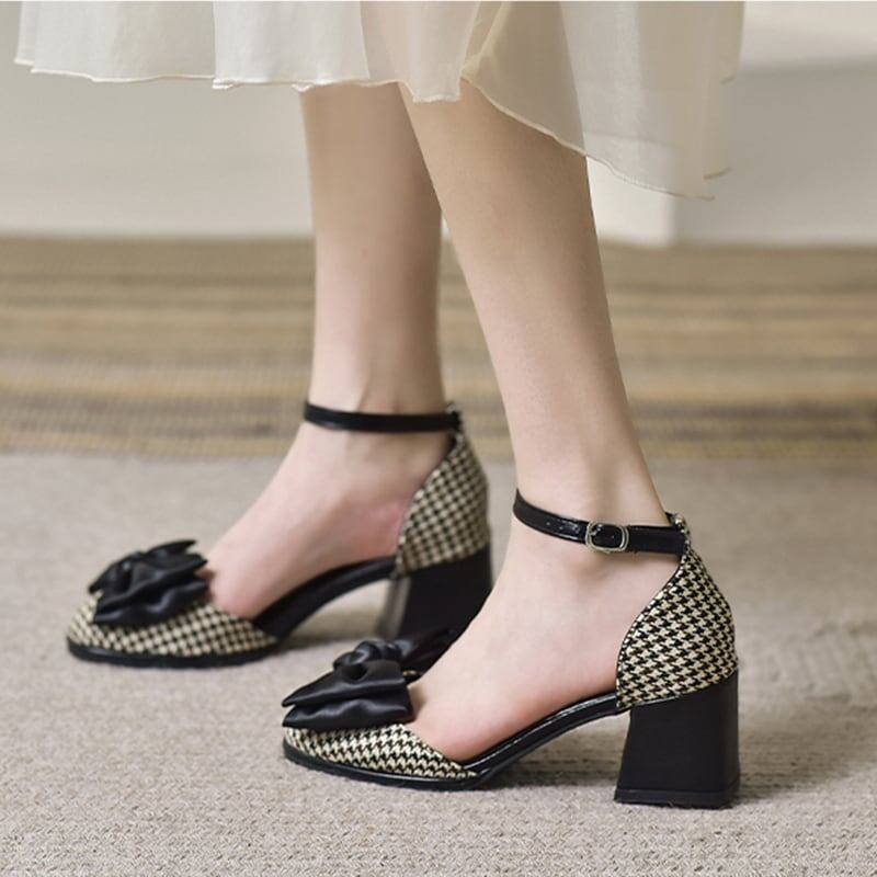 好感度満載 蝶結び 女性力を高める 太ヒール シューズGF1331