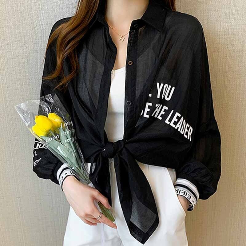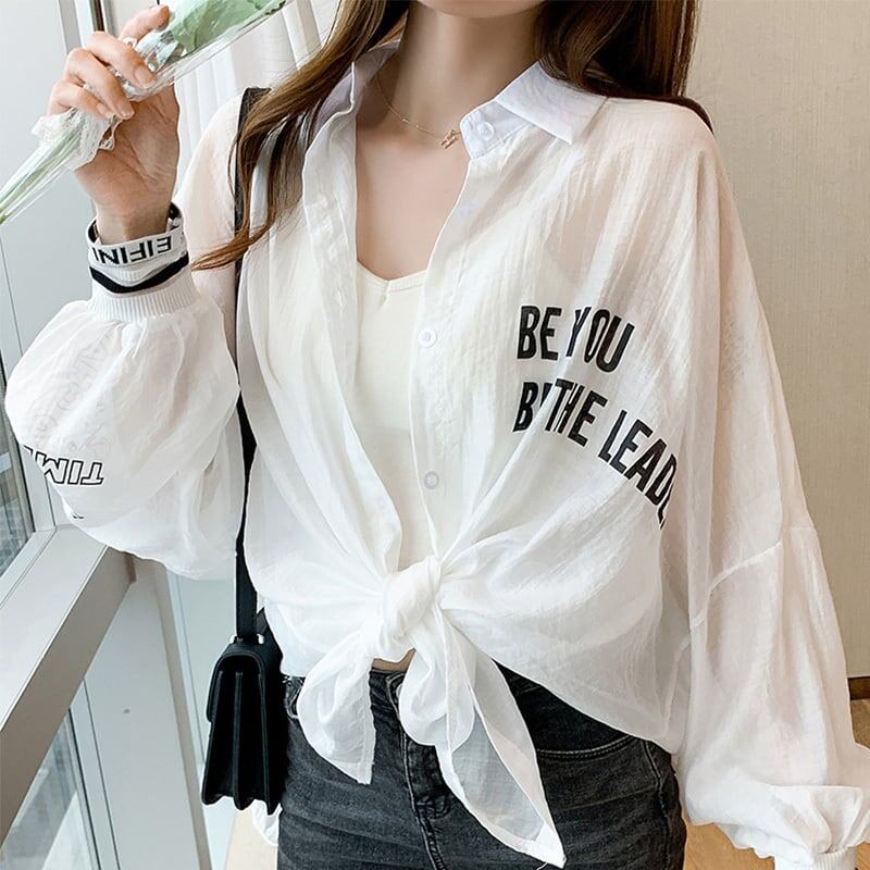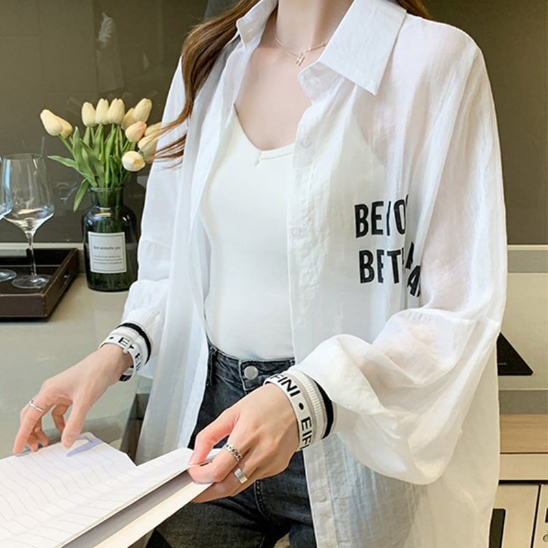 好感度満載 アルファベット 日焼け対策 透け感 シャツ ブラウスGF1344
