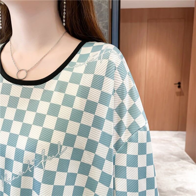 好感度満載 ラウンドネック チェック柄 女性力を高める Tシャツ カットソーGF1378