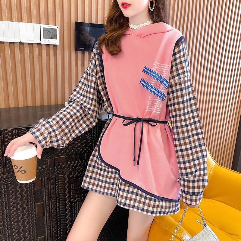 着痩せ チェック柄 デザイン感 合わせやすい スウェット パーカーGF1384