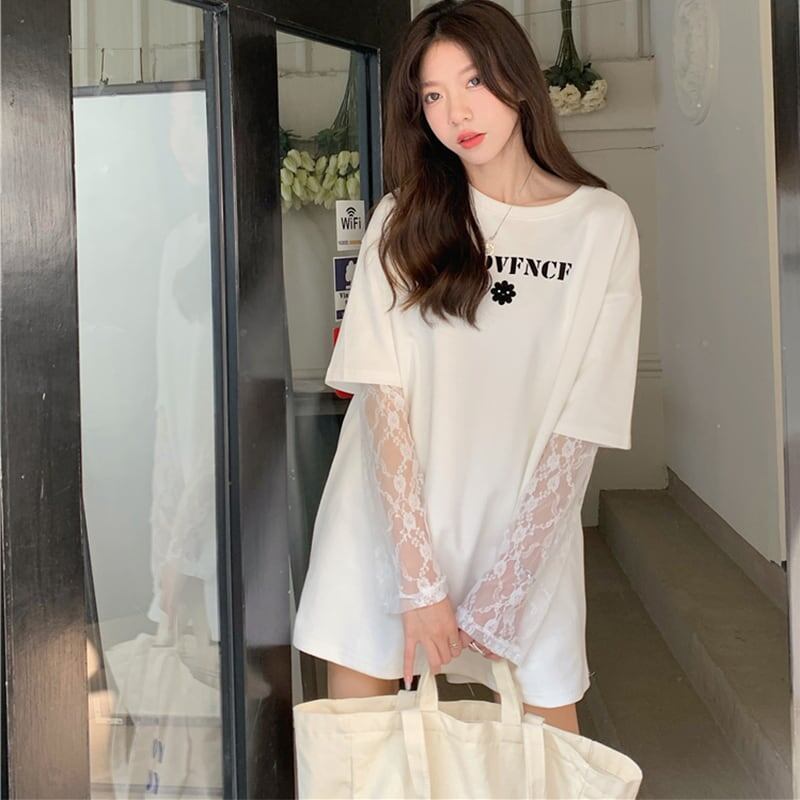 スタイリッシュ 切り替えレース 一目惚れ Tシャツ カットソー トップスGF1391
