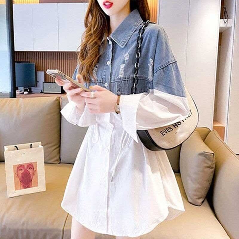 オシャレ度満点 折り襟 切り替え 気質溢れる シャツ ブラウスGF1397