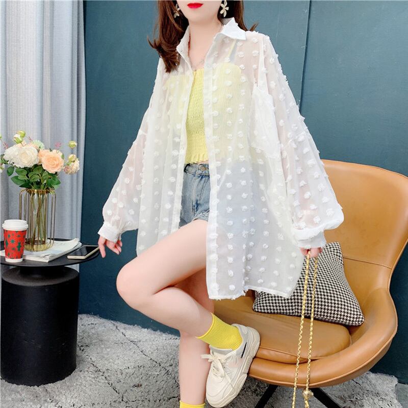 ルーズ POLOネック 日焼け対策 透け感 3色選択可 シャツ ブラウスGF1400