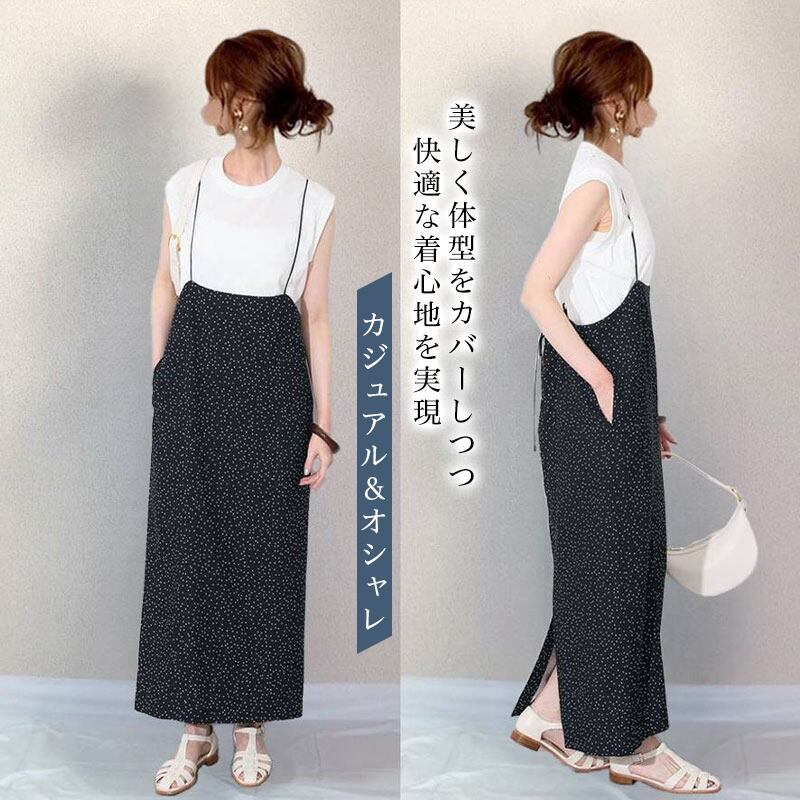 着回し力抜群 シンプル カジュアル ポケット付き スリット 花柄 ノースリーブ ジャンパースカート 大人カジュアル fashion ootd 夏コーデ ファッション coordinateコーディネート 夏服 カジュアルコーデ 今日のコーデ 大人コーデ レディースGF4989