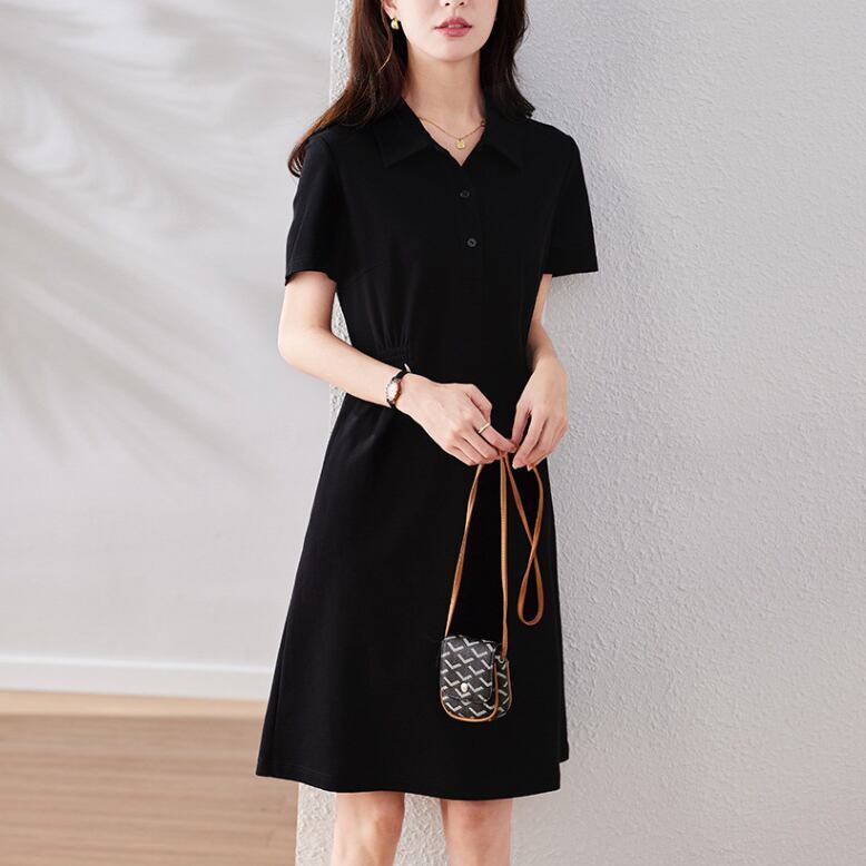コンサバ POLOネックボタン Aライン 半袖 シンプル カジュアルワンピース 大人カジュアル fashion ootd 夏コーデ ファッション coordinateコーディネート 夏服 カジュアルコーデ 今日のコーデ 大人コーデ レディースGF5001