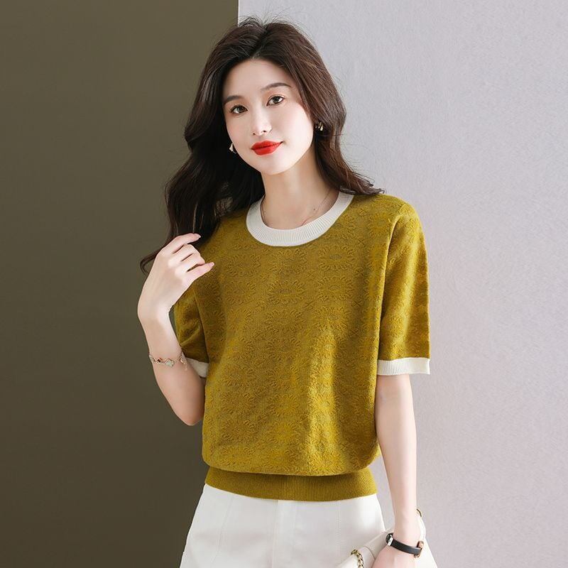 見逃し厳禁 シンプル 半袖 着痩せ効果 接触冷感ニット Tシャツ 大人カジュアル fashion ootd 夏コーデ ファッション coordinateコーディネート 夏服 カジュアルコーデ 今日のコーデ 大人コーデ レディースGF5016