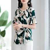 目を奪われる ファッション 半袖 ラウンドネック ボウタイ フレア袖 プリント ブラウス 大人カジュアル fashion ootd 夏コーデ ファッション coordinateコーディネート 夏服 カジュアルコーデ 今日のコーデ 大人コーデ レディースGF5023