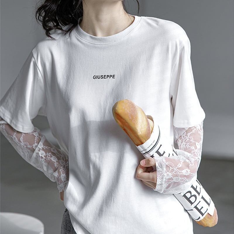 清純甘くて女子力UP 切り替え 美感いっぱい Tシャツ カットソーGF1441