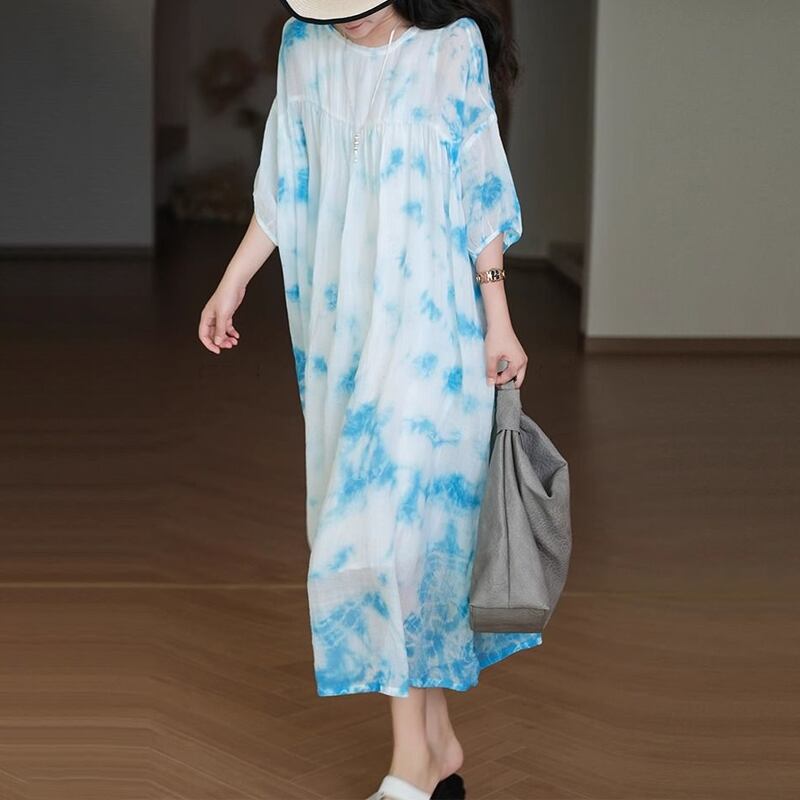 2色展開 キレイ見え エレガント 絞り染め 体型をカバー ロング カジュアルワンピース 大人カジュアル fashion ootd 夏コーデ ファッション coordinateコーディネート 夏服 カジュアルコーデ 今日のコーデ 大人コーデ レディースGF5059