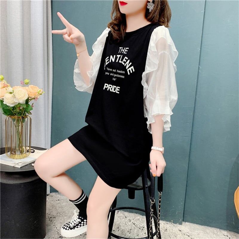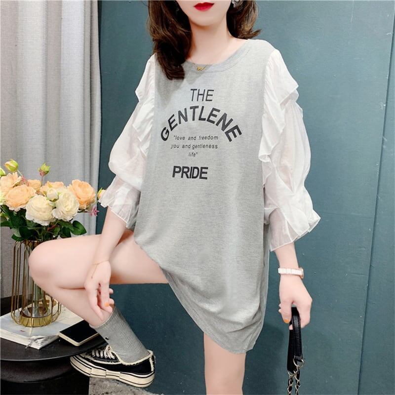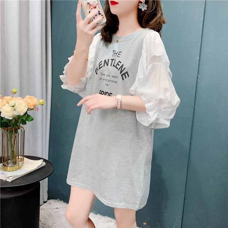 個性的なデザイン 切り替え ワンピース スタイリッシュ Tシャツ カットソーGF1482