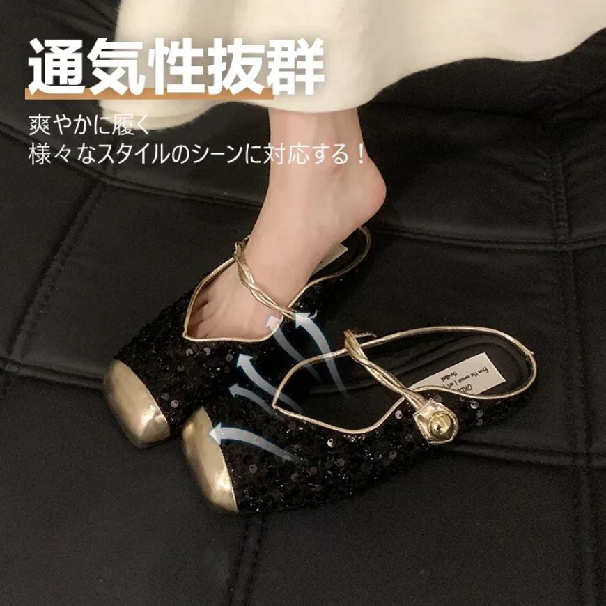 超軽量 ラメ入り スクエアトゥ フラットヒール カジュアル レトロ メリージェーン パンプス 大人カジュアル fashion ootd 夏コーデ ファッション coordinateコーディネート 夏服 カジュアルコーデ 今日のコーデ 大人コーデ レディースGF5213