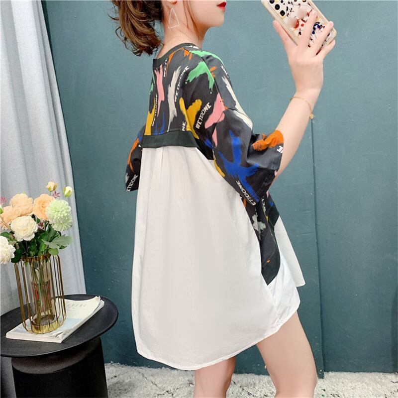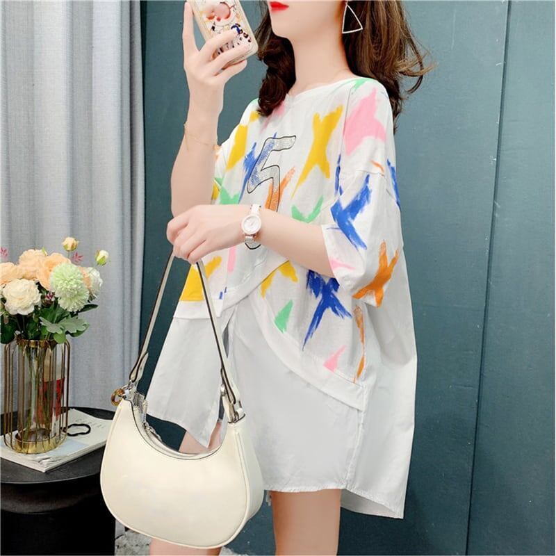 好感度満載 プリント 切り替え 美感いっぱい Tシャツ カットソーGF1514