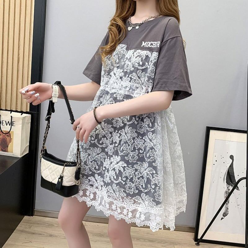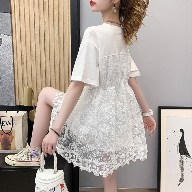 女子マスト ゆったり 切り替え レース 着痩せ ハイウエスト 半袖ワンピースGF1586