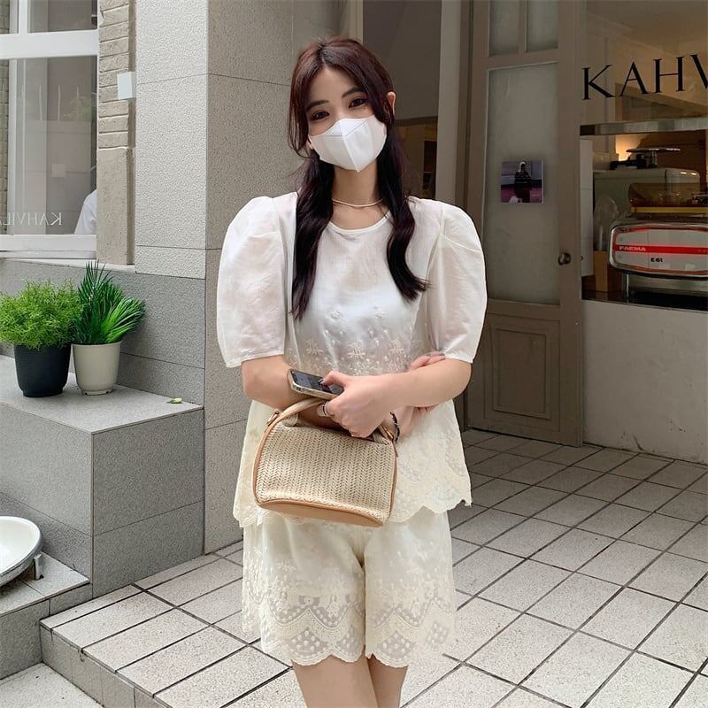 カジュアル 切り替え オシャレ度満点 ブラウス+ショートパンツ セットアップGF1621