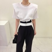 好感度満載 無地 切り替え 美感いっぱい Tシャツ カットソーGF1651