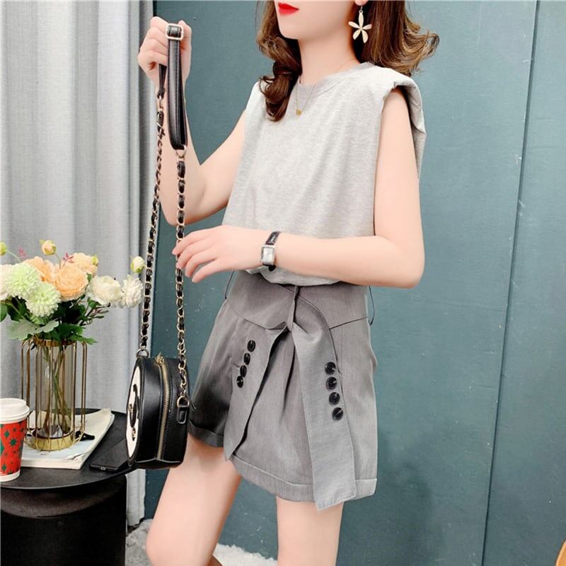 オシャレ度満点 切り替え スタイリッシュ ブラウス+ショートパンツ セットアップGF1653