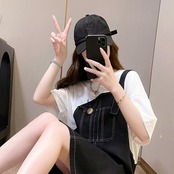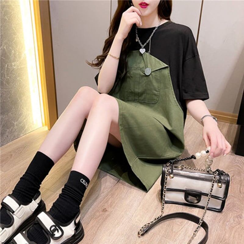 カジュアル 切り替え Tシャツ 一目惚れ カットソー ワンピースGF1716