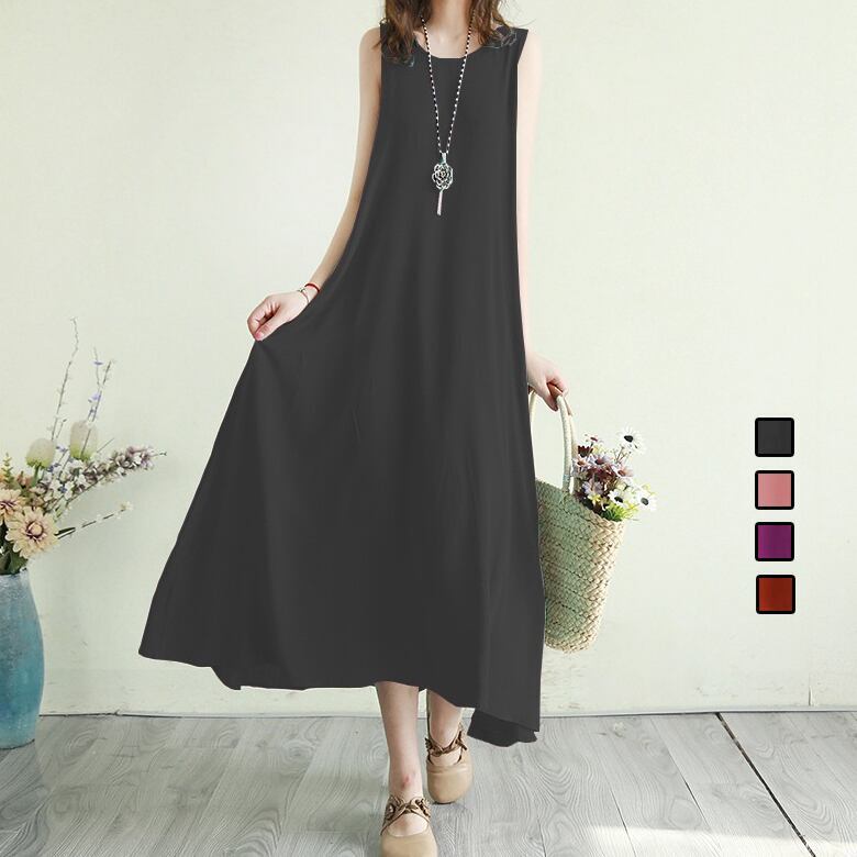 Basic日常簡約 カジュアル ノースリーブ Aライン 無地 ラウンドネック ジャンパースカート 大人カジュアル fashion ootd 夏コーデ ファッション coordinateコーディネート 夏服 カジュアルコーデ 今日のコーデ 大人コーデ レディースGF5499